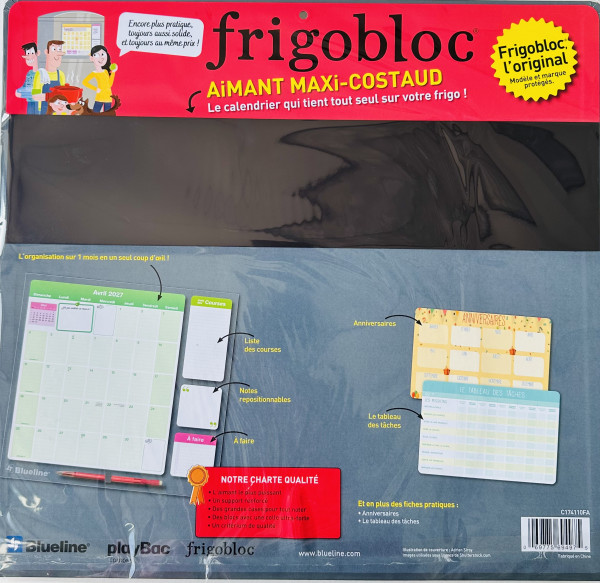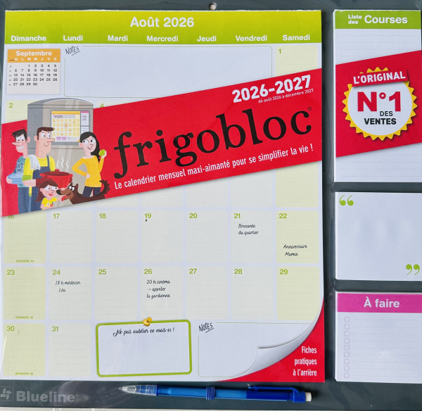Calendrier mensuel magnétique FRIGOBLOC, comprend un mois par feuille, un bloc par jour, couvrant 16 mois, de septembre 2025 à décembre 2026, et simplifie la vie de l'ensemble de la maison dans un endroit centralisé.
