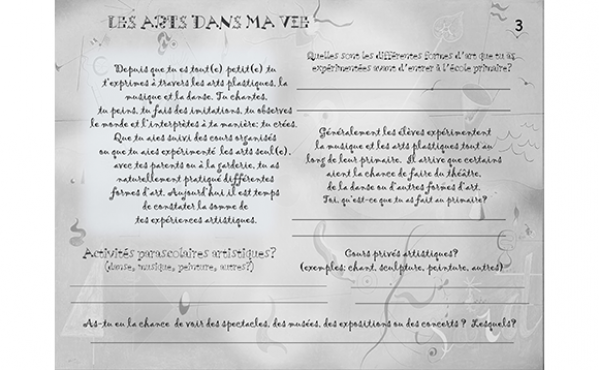 Le cahier de traces vous offrira la possibilité de suivre et d'évaluer le travail et la démarche artistique de vos élèves sur du papier cartouche de qualité. Voilà la réponse aux exigences en évaluation du programme du ministère, un outil de consignation du cheminement de l'élève doublé de références riches et variées.