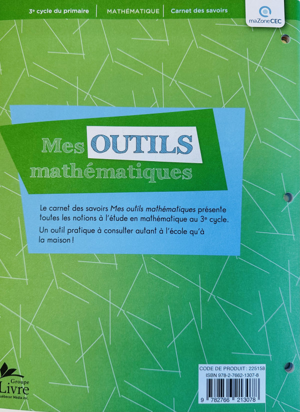 Mes outils mathématiques est un carnet des savoirs qui présente toutes les notions à l'étude en mathématique au 3e cycle.