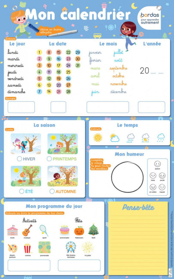 Poster ardoise effaçable - Mon calendrier
