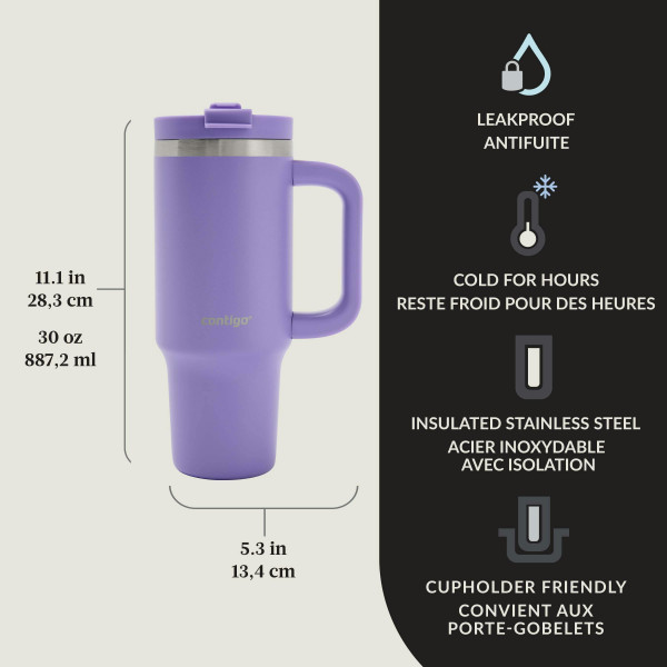 Gobelet isotherme (30oz/887 ml) en acier inoxydable Contigo Streeterville (Lilas) (no 2221418) (Jusqu'à épuisement des stocks!)