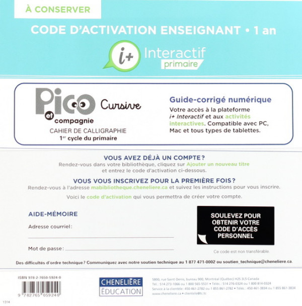 Pico et compagnie - 1er cycle - CURSIVE (CARTON ACTIVATION ENSEIGNANT WEB 1 AN) - ISBN 9782765059240 (Jusqu'à épuisement des stocks!)