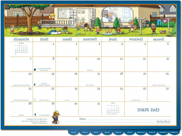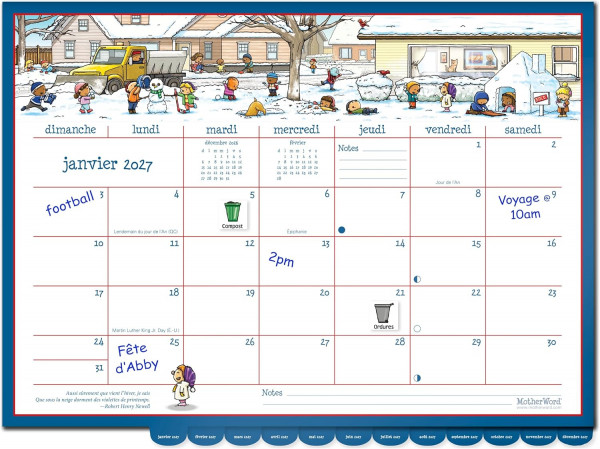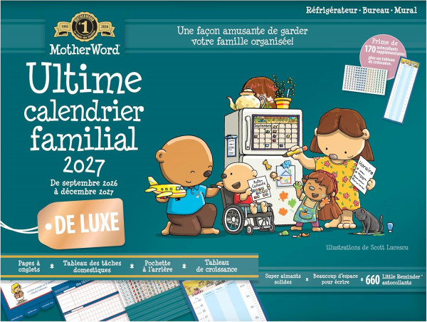 Tableau/Calendrier familial de frigo MotherWord® DELUXE (2026-2027) (18x13.5po.)/(45.7x34.2cm) français
