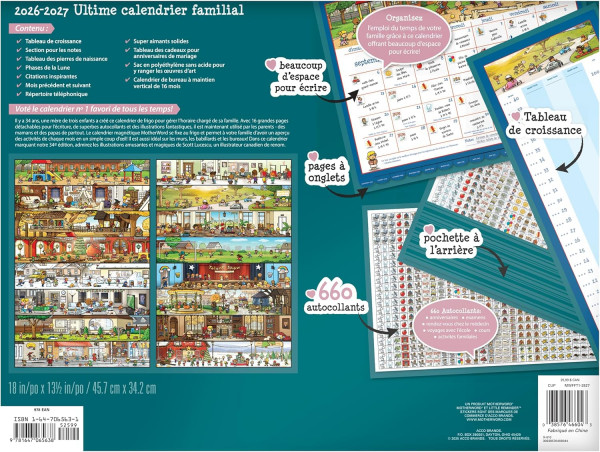 16 mois : septembre à décembre. Aides-mémoire autocollants. Aimants puissants inclus.